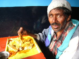 La costa est e le Andamane, sono stati colpiti direttamente dello Tsunami del 2004 e la memoria é ancora viva. Una guida, al museo di Kanyakumari, la punta a sud dell’India, mi racconta di aver perso l’occhio destro per via della sabbia nell’acqua del maremoto. Alle Andamane mi raccontano dell’onda che ha colpito l’arcipelago al sud, alta quanto 2 palme é arrivata alla velocità di 800Km/ora. Stanno ancora ridisegnando le cartine, aggiunge un tizio, dove c’era un’isola, adesso ce ne sono 2, con un canale navigabile in mezzo. Gli Indiani in media sono di statura bassa, te ne ricordi improvvisamente ogni volta che sbatti la testa qui o là. La maggior parte delle volte finisce con tue imprecazioni in 3 lingue differenti, mentre l’Indiano, che é sempre lì al tavolo a guardarti, si gira verso gli altri e ride. Già ridere, é forse l’unica cosa che vedrai fare a qualcuno seduto a tavola. Non importa se a mangiare o a bere, a tavola non si parla, punto e basta é maleducazione. Apparentemente in Hindi non esiste nemmeno il “buon appetito”, non si dice, si mangia e basta. Se parli, ti chiedono meravigliati: non hai fame?