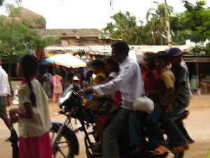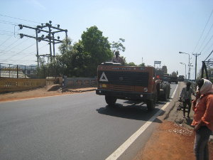 Poi ci sono i camion senza carrozzeria, sono solo ruote e motore su di un telaio nudo sovrastato da una sedia con volante. Li trasportano cosi, tra fabbriche di montaggio, ubicate in città differenti. Sorpassando gli autobus non sempre é possibile schivare gli sputi che provengono dai finestrini; arrabbiarsi non serve. In 4 mesi, non ho mai visto un singolo autista arrabbiarsi, mai una sola volta. Così, pulisco la visiera con il braccio, accelero e faccio l’indiano. La Piaggio qui ha fatto la fortuna, l’ape o risciò, come la chiamano in Asia é il veicolo tuttofare, trasporta merci, persone, e tantissime altre cose, ne vedi uno pieno d’erba, uno che trasporta uova, ma i più impressionanti sono quelli che trasportano persone anche 20 magari metà dei quali appesi di lato.