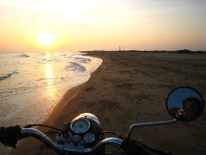 Sorrido a 28 denti, visto che mancano quelli del giudizio, senza rispondere. In realtà ha ragione, Dabu, così chiamo il mio zaino che ha già girato mezzo mondo sulle mie spalle, mi ha salvato la vita solo 1 mese prima proprio qui in India. Il para-cadute ha attutito gran parte dell’impatto con quel camion che improvvisamente, tagliandomi la strada mi ha fatto rimbalzare al suolo schiacciando la mia prima moto. 2 graffi, una ferita sul ginocchio, il casco rotto ancora allacciato in testa mentre mi alzo dal suolo. Quel giorno, come ce n’é tanti nella vita, ero di fronte ad un bivio, in cui, seppur spaventato ho deciso di proseguire, di ri-comprare un’altra moto e di continuare il viaggio. Così é giusto, mi sono sentito dentro. Un incidente, come ne capitano tanti, un giorno lunghissimo dove il sinistro arriva dopo 6 ore di guida, poi quelle altre 6 ore lì seduto su una dura sedia in legno del commissariato di polizia ad aspettare non so cosa. Gli interminabili dialoghi con i poliziotti, che invano tentano di spillarti denaro, il tassista dell’ape ed il gestore del negozio all’angolo, uniche 2 persone che parlano Inglese nei paraggi, s’improvvisano mie avvocati e mi difendono animatamente da non so cosa, parlando in Hindi con il commissario. Alla fine mi lasciano andare, fuori dal commissariato il titolare del camion si avvicina e mi paga 2000 Rupie (circa 30 Euro) di risarcimento, non potevo pagarti davanti ai poliziotti mi dice, non avresti visto nemmeno questi. Infine altre 6 ore di autobus per tornare a Mysore con un ginocchio gonfio che occupa 3 sedili da solo su di un autobus stracolmo che sorpassa in continuazione. Diverse volte ho visto camion non fermarsi all’alt della polizia, se ti fermi, spesso prendi la multa e la ricevuta non é un’opzione. La soddisfazione più grande, nel viaggiare in moto, sono le corse sulla spiaggia al tramonto. Km e Km sul bagnasciuga deserto accecato dal sole arancione che sfiora il mare. Verso la fine del viaggio arrivo ad Hampi, popolare meta turistica del sud-ovest. Qui incontro Gillian, uno studente francese di psicologia, anche lui é alla fine del viaggio, sono infatti 5 mesi che gira per l’India in bicicletta. Confrontiamo le esperienze, parliamo delle indicazioni sbagliate che ricevi per la strada e mi passa un concetto: vedi, per me non esiste la strada sbagliata, io vado senza destinazione. Vado e quando mi piace, mi fermo; così, conclude é filosoficamente impossibile sbagliare. L’India é sicuramente il paese più difficile dove io abbia mai viaggiato. Il primo mese é terribile, con differenze culturali estreme, ma poi molto lentamente cominci a vedere i lati positivi, quelli che devo veramente cercare offuscato dalla mentalità occidentale che ho nel sangue. La gente é d’oro, molti siti magici. Essendo un ex-colonia c’é un sentito comune di cambiamento e voglia di riscatto internazionale. Su di un cartello pubblicitario grande come un campo da tennis, un uomo in giacca e cravatta affianca uno slogan a caratteri cubitali: “Le Rupie rimpiazzano il dollaro Americano, questo é il titolo che voglio leggere sul “Wall Street journal”. C’é da dare atto agli Indiani di avere un incredibile fiuto per il business. Un’altra pubblicità, della Garnier questa volta in televisione, promuove una crema che garantisce di schiarirti la pelle di 2 tonalità, apparentemente Michael Jackson ha fatto scuola.